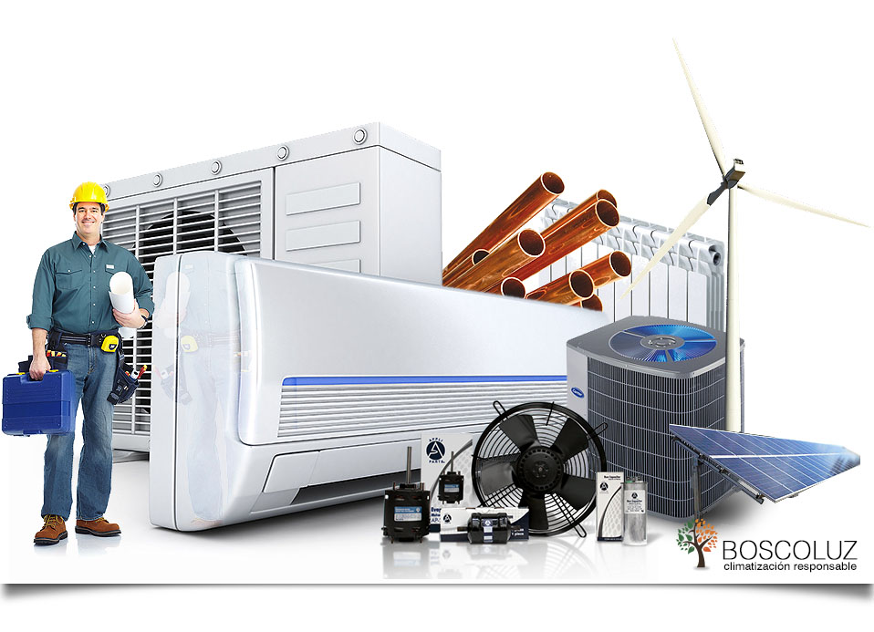 En Boscoluz realizamos la instalación y mantenimiento de equipos de climatización y aire acondicionado: Split y multisplit, sistemas de caudal variable refrigerante, conductos con sistemas de zonificación, enfriadores de agua, evaporativos… según sus necesidades: comerciales e industriales: naves, oficinas, centros comerciales, hostelería….